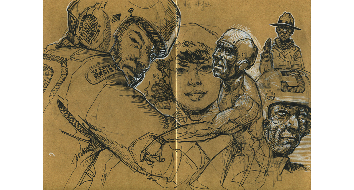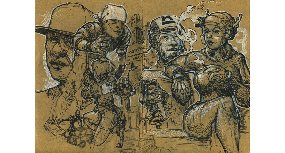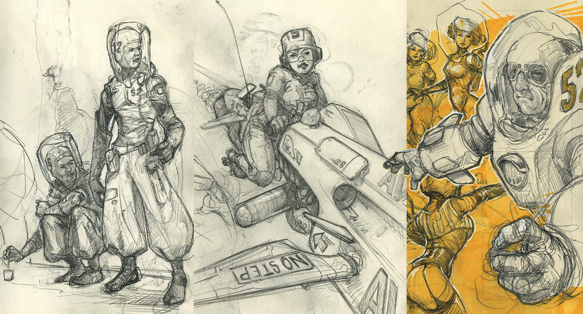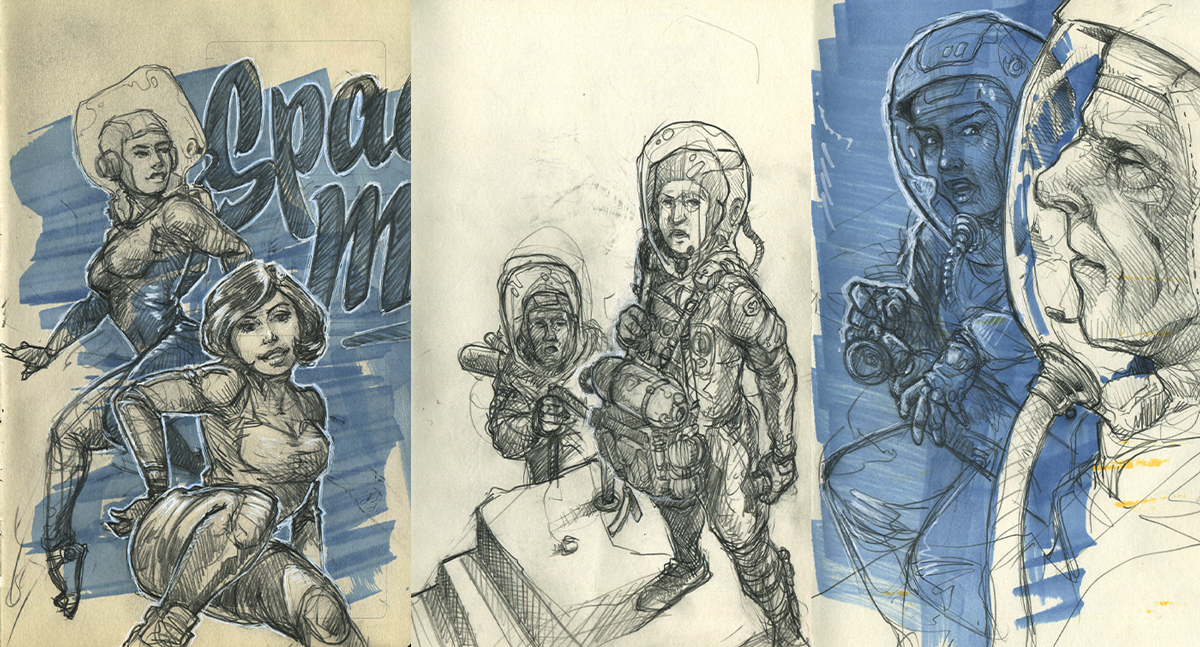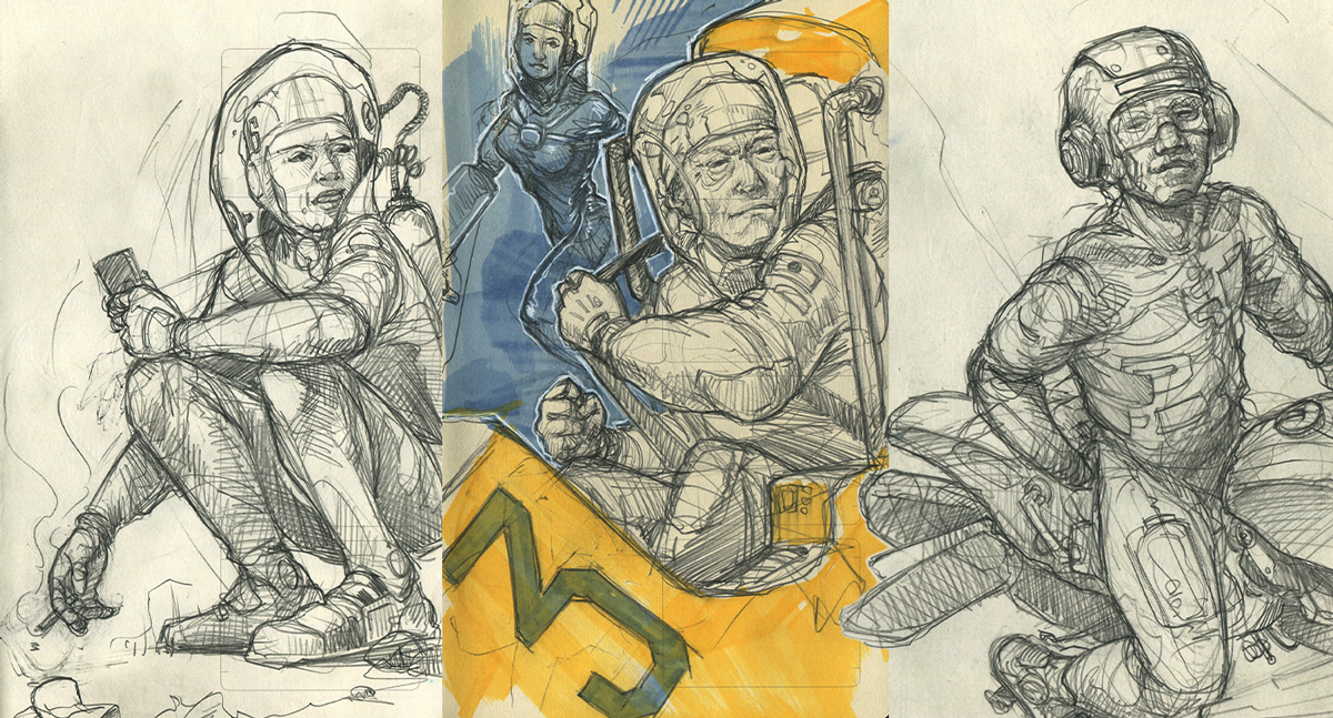 This is a small selection of pages from my sketchbooks. I do a lot of sketching and drawing. Practicing, learning, improving every day. And yes, I like science fiction a lot.